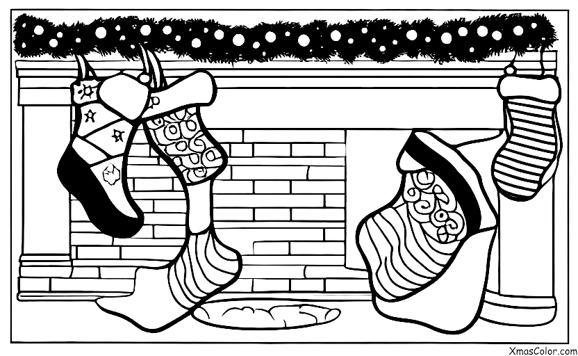Un bas rouge avec une manchette blanche, suspendu à une cheminée.