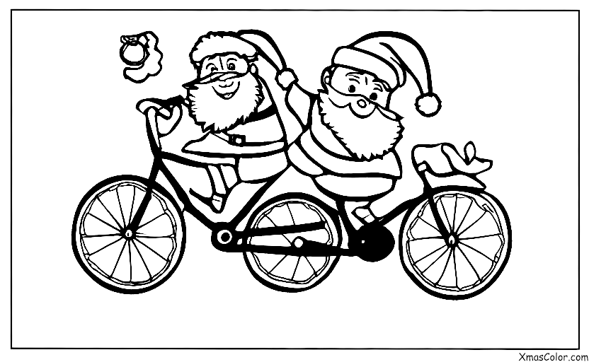 Le Père Noël est à vélo, sonnant de sa cloche.